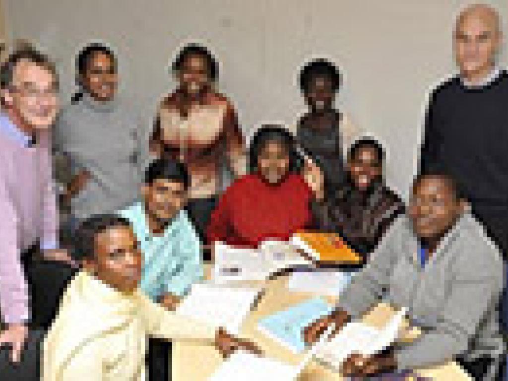 Prof Robert Wilkinson (left), director of CIDRI-Africa, IDM; Prof Graeme Meintjes (right); and colleagues at UCT
